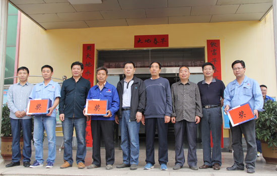 頒獎領(lǐng)導(dǎo)與獲獎員工合影留念