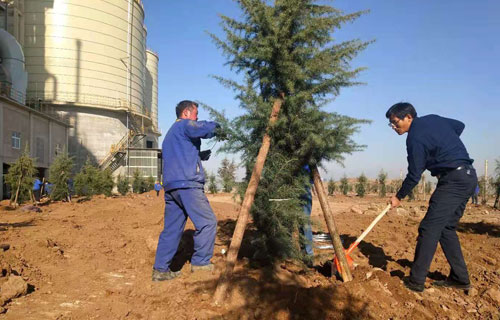 一排排新栽的樹木橫成排,豎成列,整齊有序,迎風(fēng)挺立,形成了一道道生機(jī)勃勃的風(fēng)景線。既美化了環(huán)境,又鍛煉了員工的身體健康,增進(jìn)了彼此間的團(tuán)結(jié)協(xié)作意識。